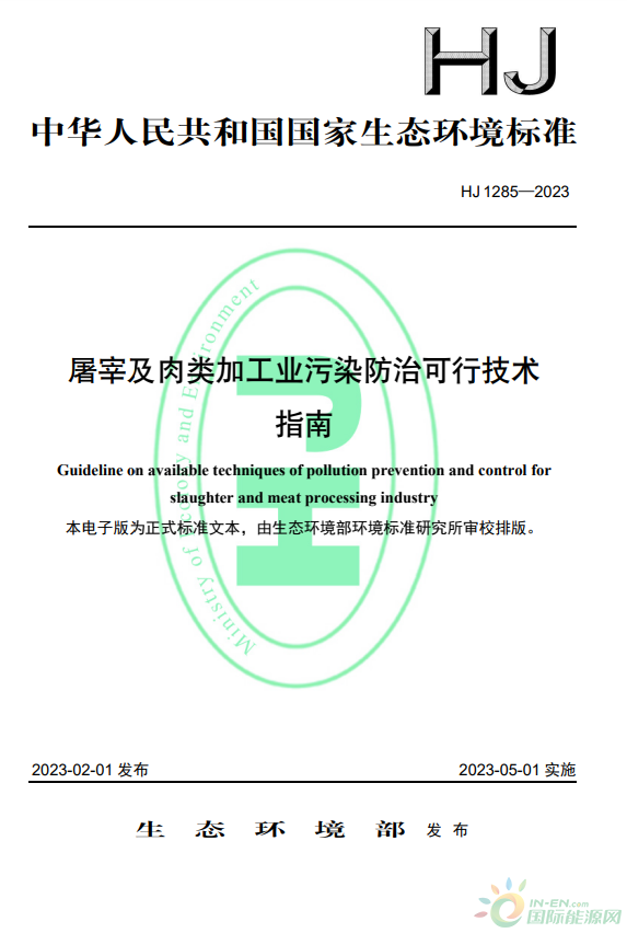 于2023年5月1日起實(shí)施,生態(tài)環(huán)境部批準(zhǔn)《屠宰及肉類加工業(yè)污染防治可行技術(shù)指南》標(biāo)準(zhǔn)為國家生態(tài)環(huán)境標(biāo)準(zhǔn)