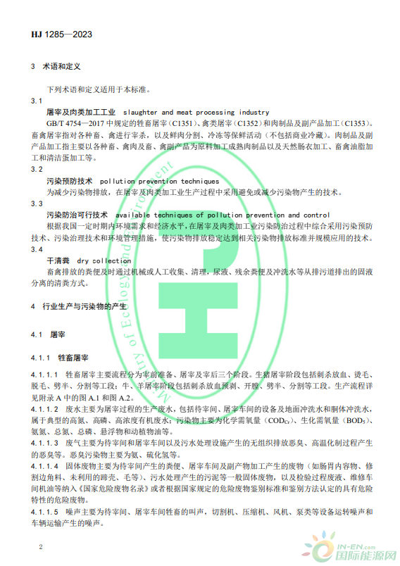 HJ 1285—2023《屠宰及肉類加工業(yè)污染防治可行技術(shù)指南》