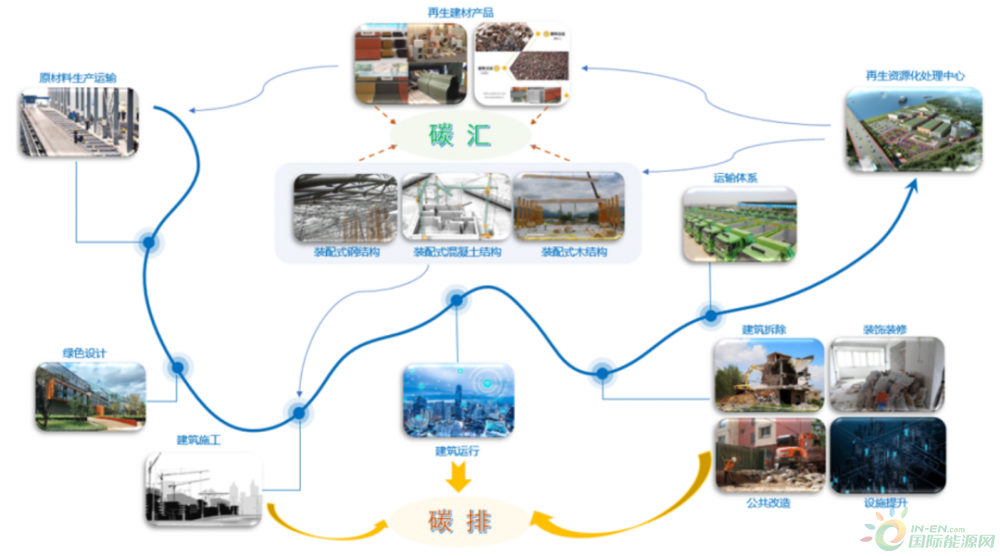 建筑領(lǐng)域是碳排放重點(diǎn)行業(yè),建筑全生命周期碳排放占比超過(guò)40%。作為全球基礎(chǔ)建設(shè)規(guī)模最大的國(guó)家,我國(guó)建筑垃圾總產(chǎn)生量同樣位居世界前茅,“十三五”末期年產(chǎn)量即已超過(guò)20億噸,這個(gè)數(shù)字也是國(guó)民經(jīng)濟(jì)跨越增長(zhǎng)的風(fēng)向標(biāo)。建筑垃圾的簡(jiǎn)易、無(wú)序堆填,不僅增加了生態(tài)環(huán)境污染負(fù)荷、隨之帶來(lái)一系列社會(huì)附加成本和負(fù)面影響,而且忽略了其自身潛在資源價(jià)值屬性,與無(wú)廢城市和綠色建造的新型管理理念相違背。雖然建筑垃圾自身成分復(fù)雜、難于完全實(shí)現(xiàn)前端分類,但是通過(guò)過(guò)去二十余年的穩(wěn)步發(fā)展,我國(guó)建筑垃圾處理行業(yè)已經(jīng)從溝壑填埋的“刀耕火種”時(shí)代逐步邁向了自動(dòng)化生產(chǎn)的“新工業(yè)”時(shí)代??梢灶A(yù)見,“資源利用高效化”將成為建筑垃圾處理領(lǐng)域發(fā)展過(guò)程的永恒主題。隨著“雙碳”戰(zhàn)略的推進(jìn),我國(guó)城鄉(xiāng)建設(shè)開啟了以綠色轉(zhuǎn)型為引領(lǐng)的新篇章。與新發(fā)展觀相適應(yīng),綠色建造作為新型建造方式,貫穿了建材生產(chǎn)、建材運(yùn)輸、建筑施工、建筑運(yùn)行、建筑拆除、廢棄物處置等六個(gè)階段。目前國(guó)內(nèi)外碳減排研究主要集中在前面四個(gè)階段,對(duì)于生命周期的尾聲兩個(gè)階段涉獵較少。