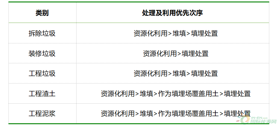 表1 建筑垃圾處理及利用優(yōu)先次序