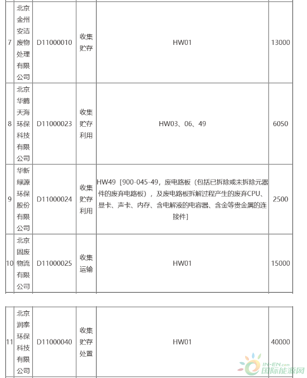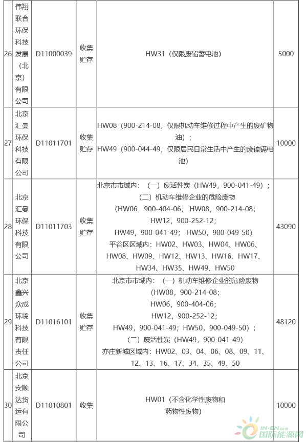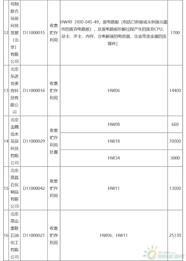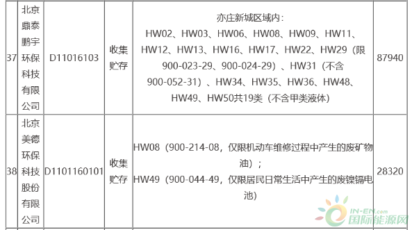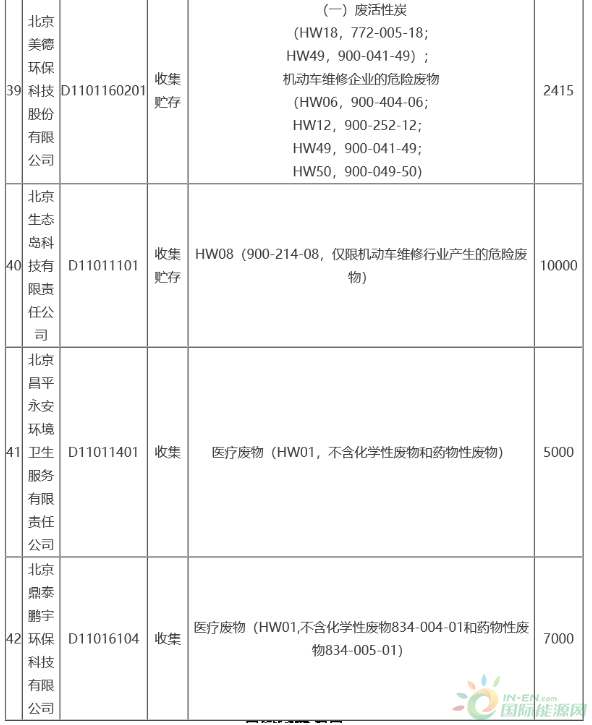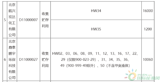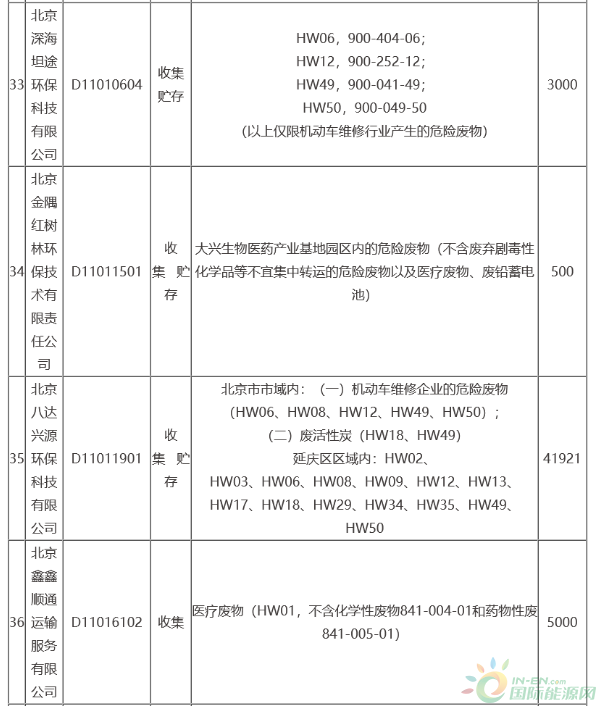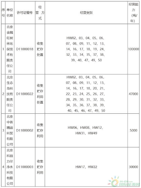 表3 北京市2022年危險廢物經(jīng)營許可證持有單位名單