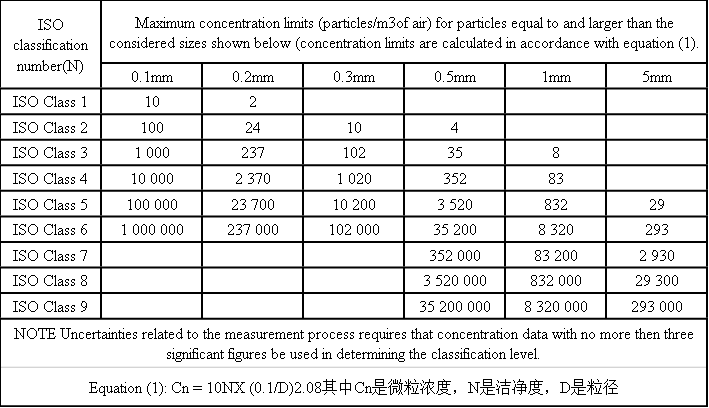 無(wú)塵室及潔凈區(qū)空氣中懸浮粒子潔凈度等級(jí)