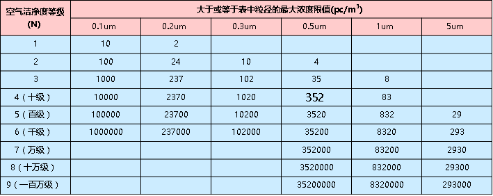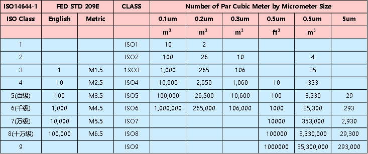 空氣中微粒的潔凈等級(jí)對(duì)照