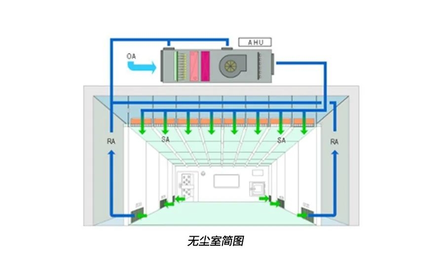 無塵室亦稱為潔凈室或清凈室,是指將一定空間范圍內之空氣中的微粒子、有害空氣、細菌等污染物排除,并將室內之溫度、潔凈度、室內壓力、氣流速度與氣流分布、噪音振動及照明、靜電控制在某一需求范圍內,而所給予特別設計之房間。無塵室最主要之作用在于控制產品(如硅芯片等)所接觸之大氣的潔凈度及溫濕度,使產品能在一個良好之環(huán)境空間中生產、制造,此空間我們稱之為無塵室。