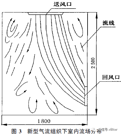 由于在實際應(yīng)用過程中有些情況會受到房間和無塵車間空間的限制, 不能布置兩側(cè)回風(fēng), 所以采用上送風(fēng)單側(cè)回風(fēng)的形式。