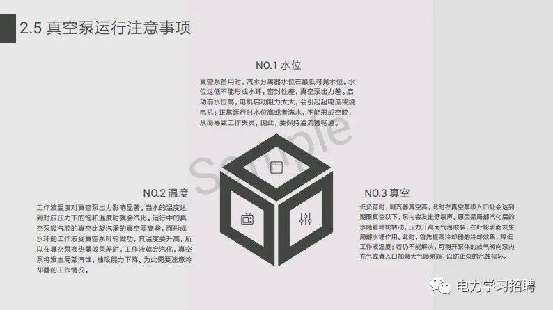 射水抽汽器具有結(jié)構(gòu)緊湊、工作可靠、制造成本低等優(yōu)點;缺點是要消耗一部分電力和水,占地面積大。離心式真空泵優(yōu)點是功耗低、耗水量少,噪音小。真空泵的缺點是:過載能力很差,當抽吸空氣量太大時,真空泵的工作惡化,真空破壞。這對真空嚴密性較差的大機組來說是一個威脅。有些電廠考慮起動時用射水抽汽器,正常運行時用真空泵來維持凝汽器真空。