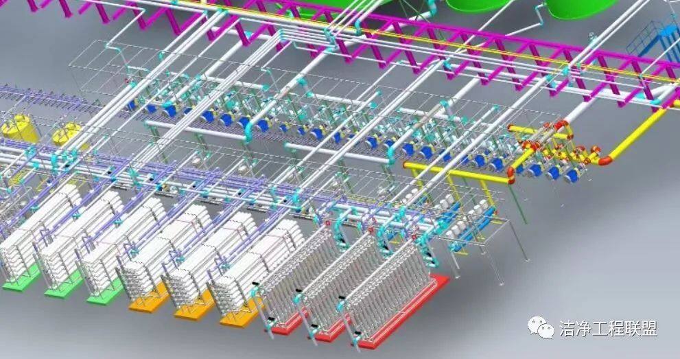 超純水系統(tǒng)水站部分施工難度最大,其主要包括三個部分:設(shè)備的搬入及安裝,共用管架的制作安裝以及管道的安裝。設(shè)備的移入一定要注意編制詳細(xì)的設(shè)備吊裝方案,特別是對于超重、超大、易損設(shè)備,千萬不可以野蠻冒險施工。共用架臺的施工要注意兩個環(huán)節(jié):?