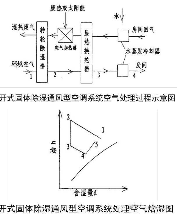 (3)除濕轉輪與蒸發(fā)冷卻空調系統(tǒng)的結合:開式通風型空調。