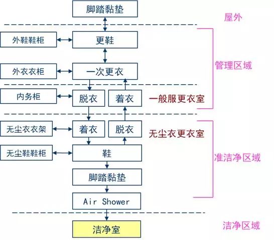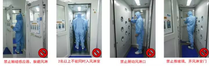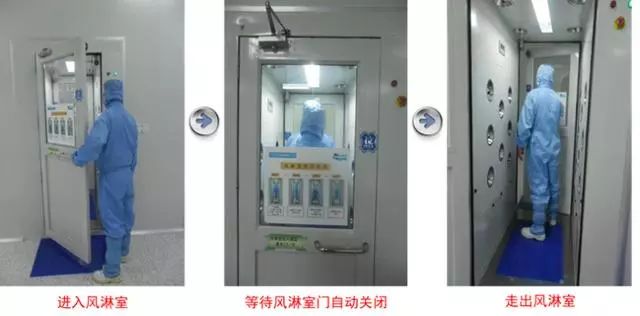 Class10,000區(qū)人員至Class100,000區(qū)作業(yè)后,若需重回Class10,000區(qū)者需經(jīng)AIR SHOWER吹送后方可重回Class10,000區(qū);而穿著Class100,000區(qū)無塵衣人員絕對禁止至Class10,000區(qū)。