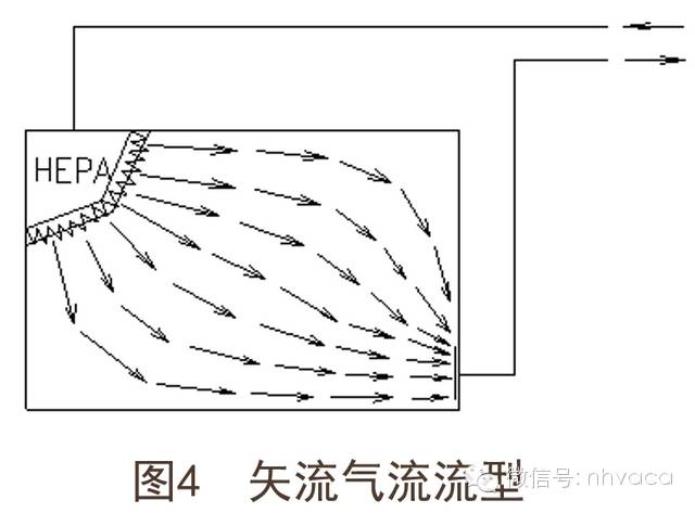 矢流(對角流)潔凈室:選上側(cè)圓弧型高效過濾器風(fēng)口送風(fēng),對側(cè)下回風(fēng)口回風(fēng)的氣流流型。