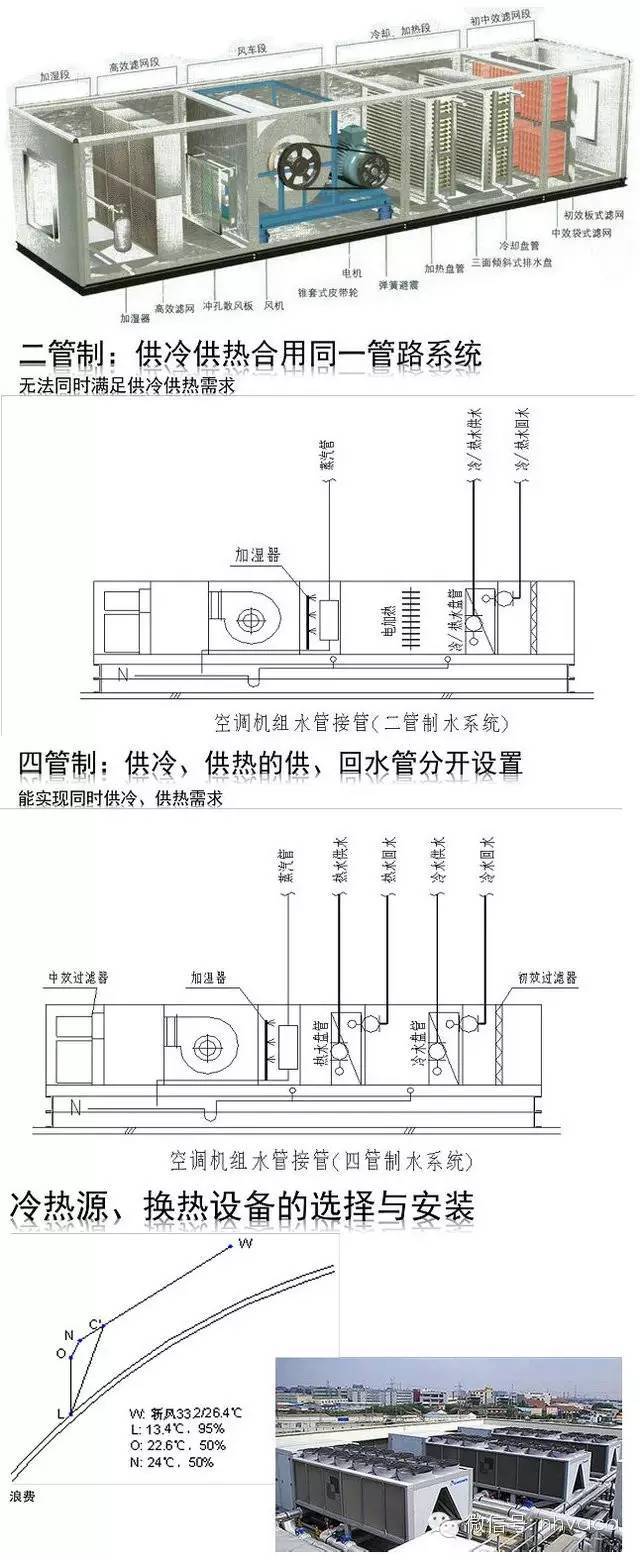 空調(diào)箱由新風(fēng)段、初效過濾段、預(yù)熱段、新回風(fēng)混合段、表冷段、送風(fēng)段、加熱段、加濕段、高中效過濾段組成。