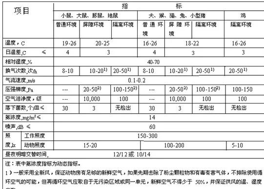 實驗動物繁育、生產(chǎn)設施環(huán)境指標(靜態(tài))