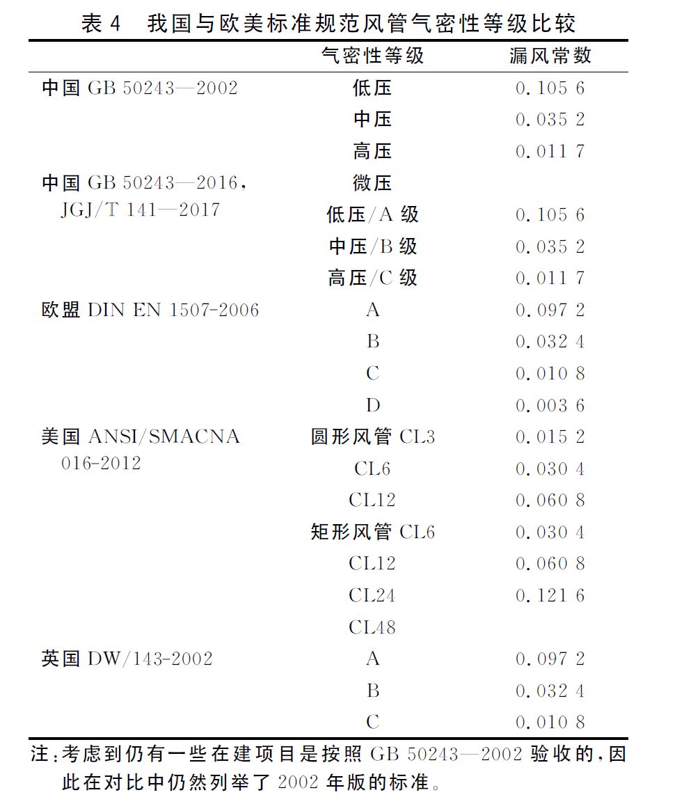 我國(guó)風(fēng)管允許漏風(fēng)量標(biāo)準(zhǔn)規(guī)范的發(fā)展及與國(guó)外典型標(biāo)準(zhǔn)規(guī)范的比較