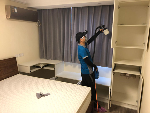 6、噴涂完成后進(jìn)行全方位熏蒸,包括壁紙,地板,家具,墻面,窗簾等。