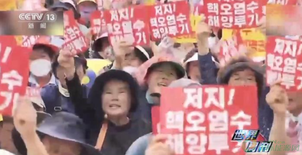 同一天,在日本駐濟(jì)州總領(lǐng)事館前,來自濟(jì)州自治道漁業(yè)和農(nóng)業(yè)團(tuán)體約2000多人集會(huì)抗議,譴責(zé)日本將福島核電站核污染水排放入海。