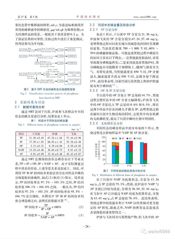 摘要 :以竹園污泥焚燒工程為依托,采用SMT方法研究磷在干污泥、爐渣和飛灰中的含量及賦存形態(tài)。結(jié)果表明,焚燒過程使?fàn)t渣及飛灰中的總磷(TP)含量比干污泥提高了2~3倍,還使其中的無機(jī)磷(IP)含量大幅提升至TP總量的99%以上,在實(shí)現(xiàn)磷富集的同時(shí)有效提升了磷的生物可利用性。分析焚燒過程對(duì)磷灰石無機(jī)磷(AP)和非磷灰石無機(jī)磷(NAIP)的影響,發(fā)現(xiàn)鎂離子與鈣離子會(huì)與污泥中的NAIP發(fā)生反應(yīng),取代鋁離子從而生成鈣鎂結(jié)合形式的AP;與爐渣相比,飛灰在布袋處受CaO添加的影響,此種轉(zhuǎn)化趨勢更為明顯,AP已經(jīng)超過NAIP成為優(yōu)勢形態(tài),占IP總量的78.4%。焚燒是上海地區(qū)處理污泥的主要方式,該研究結(jié)果從營養(yǎng)物回收角度為污泥焚燒飛灰的資源化利用提供了新思路。