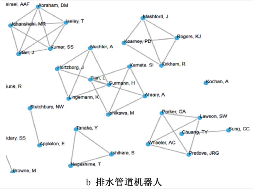圖1 管道機器人及排水管道機器人作者合作關(guān)系網(wǎng)絡(luò)