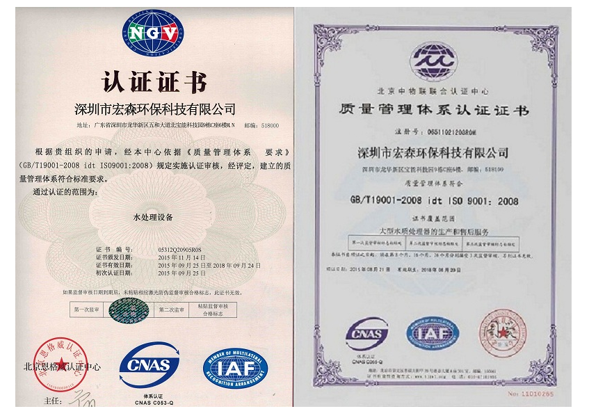 深圳市宏森環(huán)??萍加邢薰居?015年正式進軍環(huán)保行業(yè),實繳注冊資本6800萬,是一家集工業(yè)純水設備,實驗室超純水設備、軟化水設備、污水處理設備等為一體綜合型企業(yè),是國家高新技術企業(yè)、雙軟企業(yè),擁有多項技術專利和軟件著作權,是深圳市環(huán)保協(xié)會理事單位、廣東省首批環(huán)保設備A級衛(wèi)生信譽度生產企業(yè)、深圳市3A誠信信用單位。
